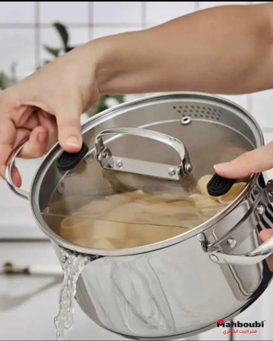 سلق المعكرونة، تبخير الخضر والسمك، طهي الشوربات واليخنات… كل شيء بقدر واحد أنيق وعملي. 👩🍳💼