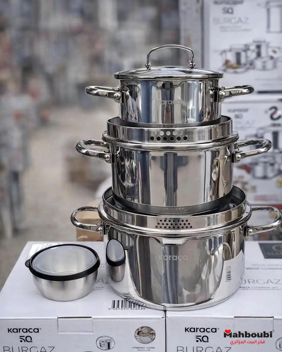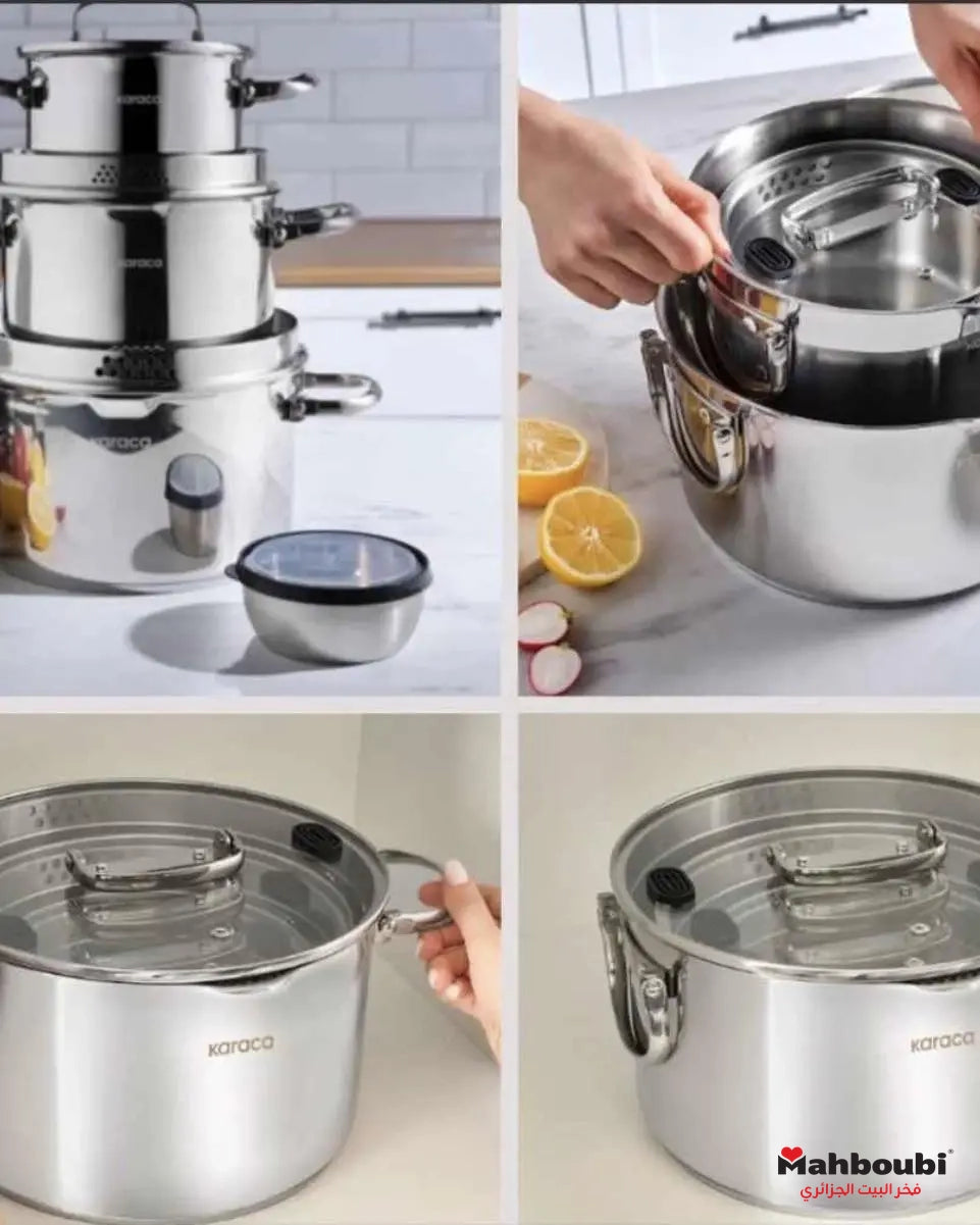 طقم الطناجر الأصلي المعروض من — محبوبي فخر البيت الجزائري : تصميم أنيق، خامة تصمد 💯لسنين، وتجربة طهي ذكية بلا فوضى.